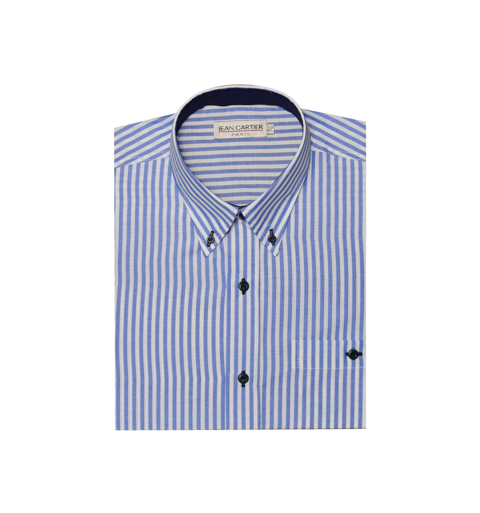 Camisa a rayas manga larga con bolsillo, con tirilla combinada y cuello inglés con botoncitos - Art 0145602